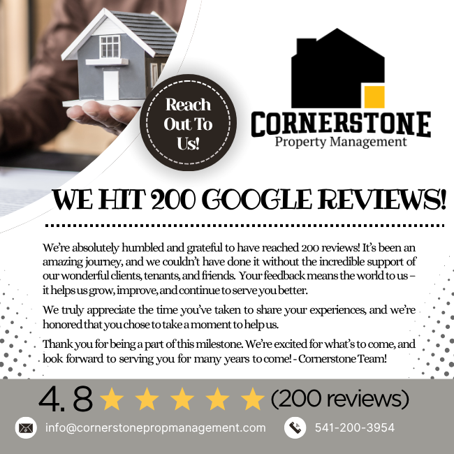 Cornerstone Property Management was created to make a difference in residential living, and we understand the importance of taking care of someone's home and investment. Our goal is to give you a reliable, and more profitable way to manage your rentals. We want to be your top choice for Property Management in Medford Oregon, and the surrounding cities!